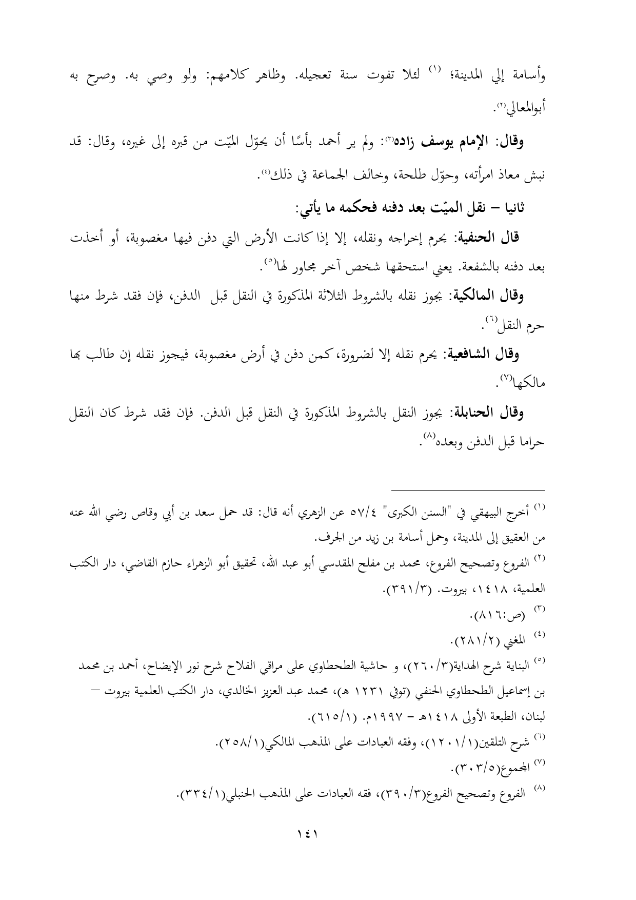 (¬٨) الفروع وتصحيح الفروع (٣/ ٣٩٠)، فقه العبادات على المذهب الحنبلي (١/ ٣٣٤).