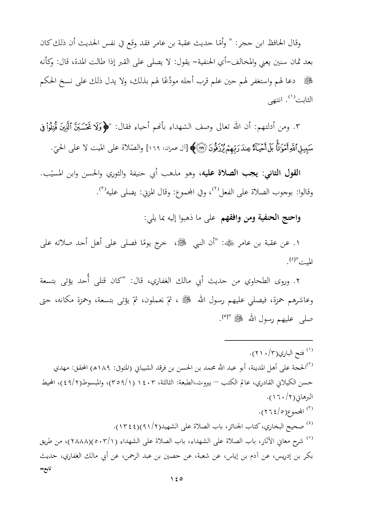 (¬٤) صحيح البخاري، كتاب الجنائز، باب الصلاة على الشهيد (٢/ ٩١) (١٣٤٤).
