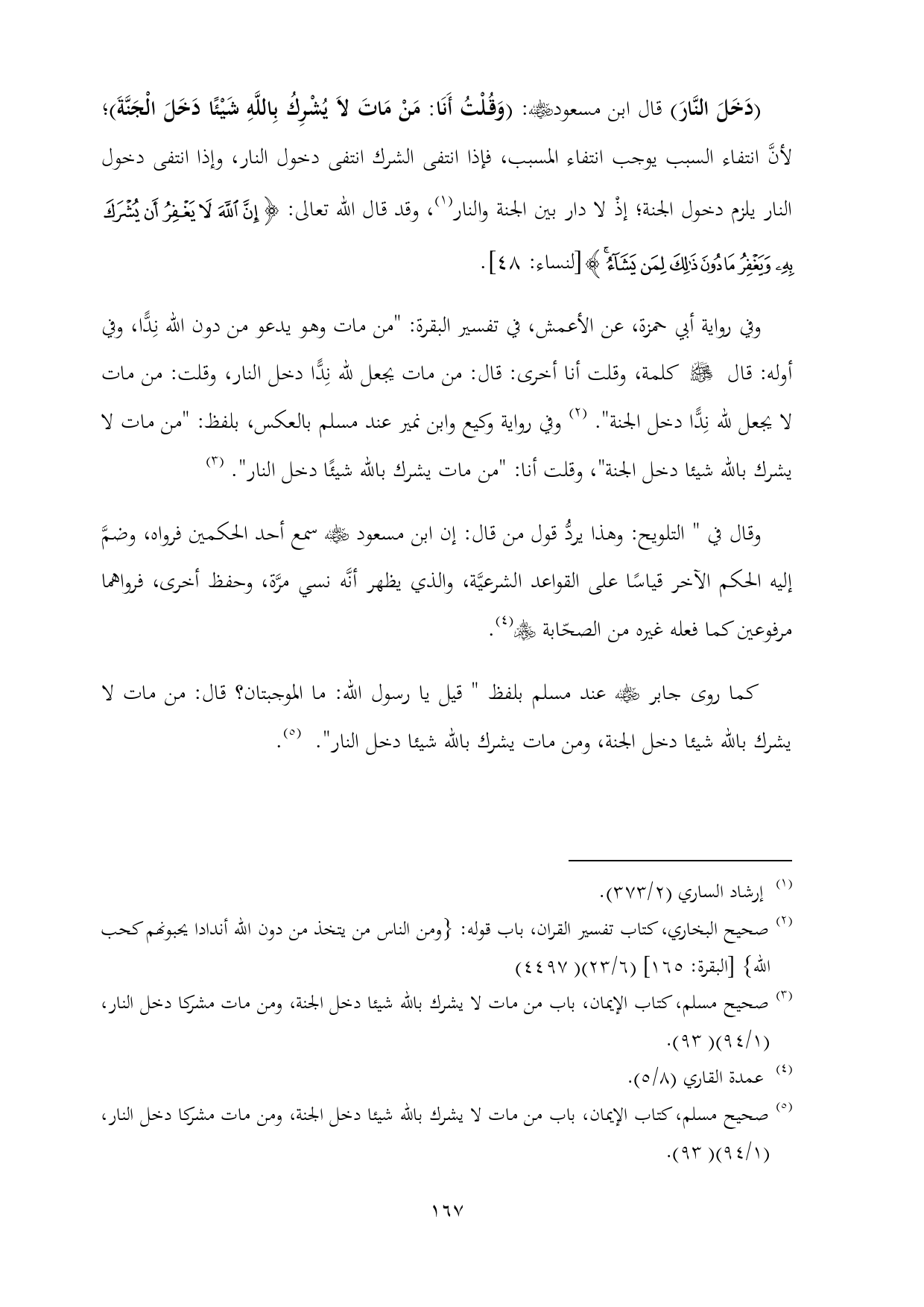(¬٣) صحيح مسلم، كتاب الإيمان، باب من مات لا يشرك بالله شيئا دخل الجنة، ومن مات مشركا دخل النار، (١/ ٩٤) (٩٣).