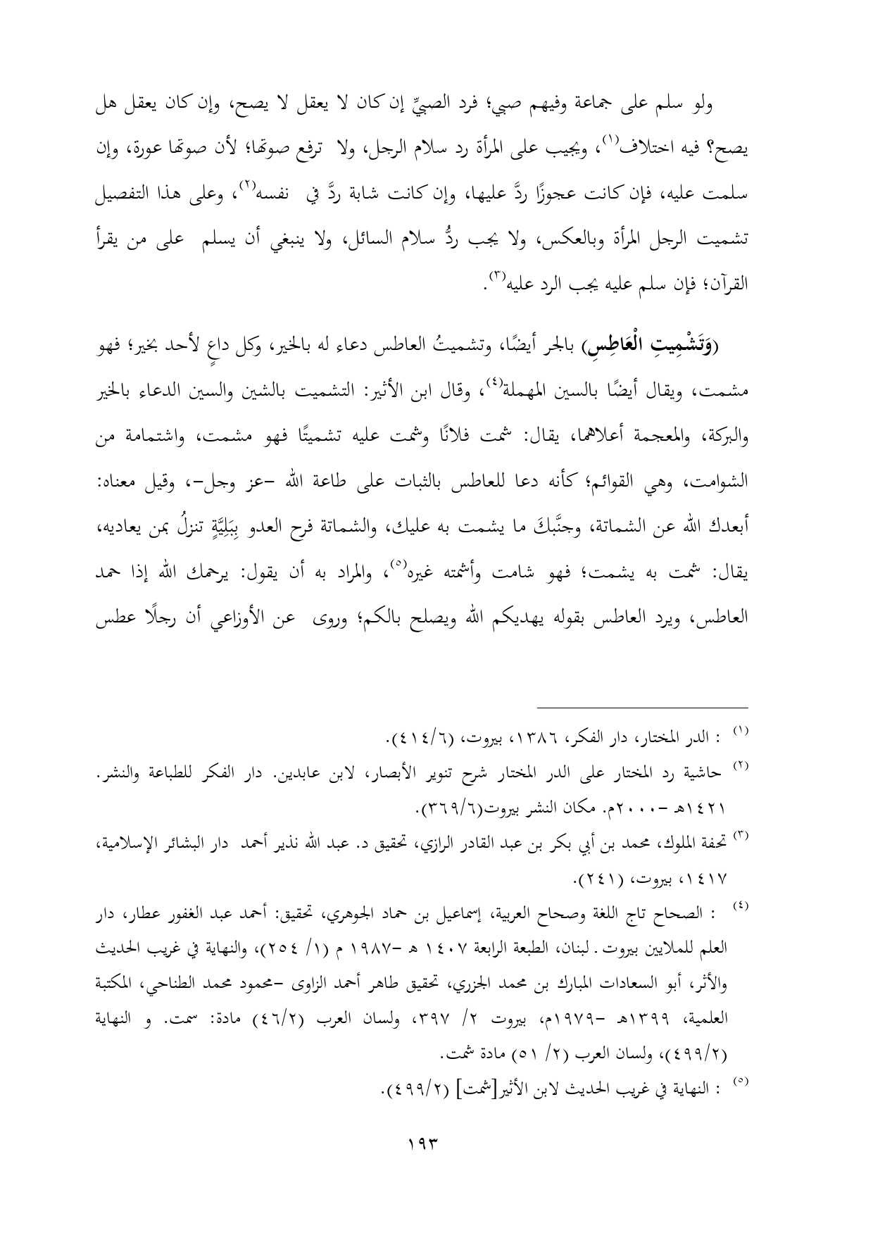 (¬٤): الصحاح تاج اللغة وصحاح العربية، إسماعيل بن حماد الجوهري، تحقيق: أحمد عبد الغفور عطار، دار العلم للملايين بيروت ـ لبنان، الطبعة الرابعة ١٤٠٧ هـ-١٩٨٧ م (١/ ٢٥٤)، والنهاية في غريب الحديث والأثر، أبو السعادات المبارك بن محمد الجزري، تحقيق طاهر أحمد الزاوى -محمود محمد الطناحي، المكتبة العلمية، ١٣٩٩ هـ -١٩٧٩ م، بيروت ٢/ ٣٩٧، ولسان العرب (٢/ ٤٦) مادة: سمت. والنهاية (٢/ ٤٩٩)، ولسان العرب (٢/ ٥١) مادة شمت.