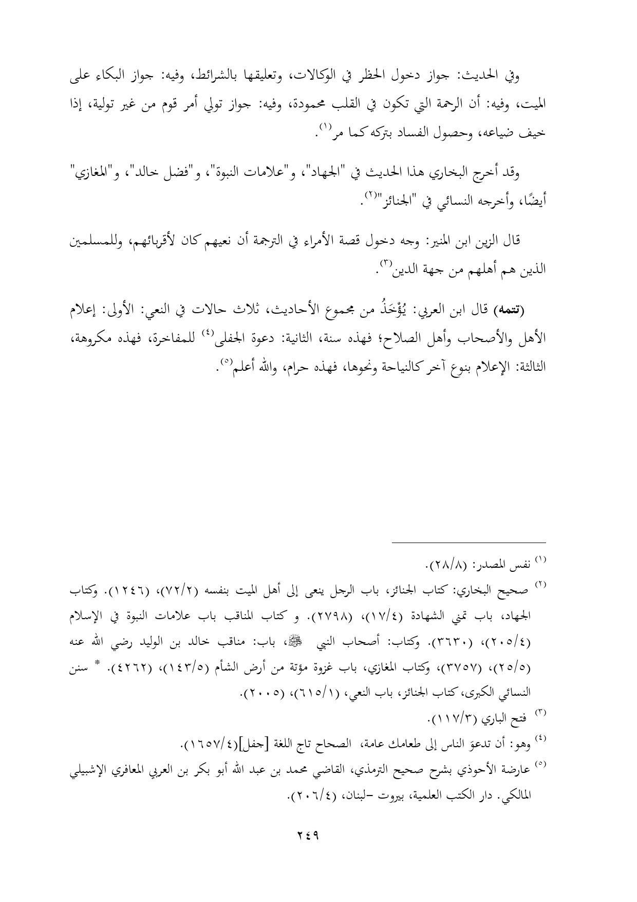 (¬٥) عارضة الأحوذي بشرح صحيح الترمذي، القاضي محمد بن عبد الله أبو بكر بن العربي المعافري الإشبيلي المالكي. دار الكتب العلمية، بيروت -لبنان، (٤/ ٢٠٦).