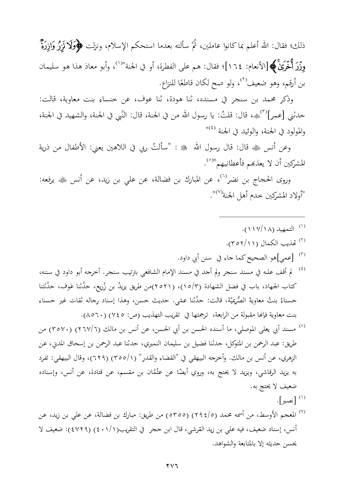 وعن أنس - رضي الله عنه - قال: قال رسول الله - صلى الله عليه وسلم -: "سألتُ ربي في اللاهين يعني: الأطفال من ذرية المشركين أن لا يعذبهم فأعطانيهم" (¬٥).