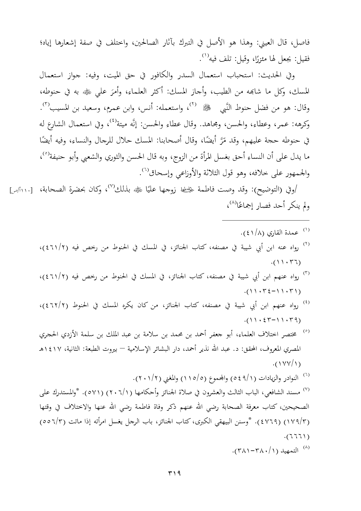 (¬٣) رواه عنهم ابن أبي شيبة في مصنفه، كتاب الجنائز، في المسك في الحنوط من رخص فيه (٢/ ٤٦١)، (١١٠٣١ - ١١٠٣٤).