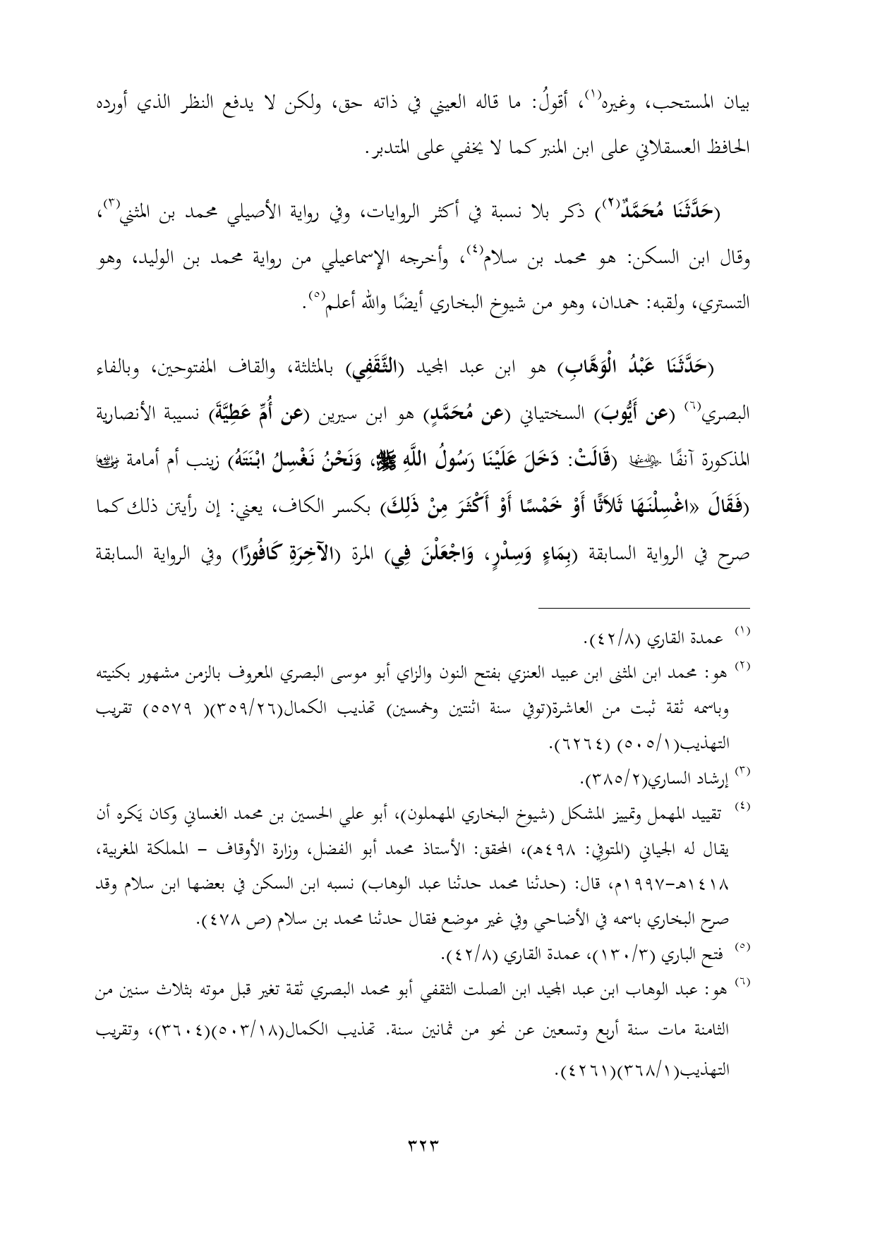 (¬٤) تقييد المهمل وتمييز المشكل (شيوخ البخاري المهملون)، أبو علي الحسين بن محمد الغساني وكان يَكره أن يقال له الجياني (المتوفِي: ٤٩٨ هـ)، المحقق: الأستاذ محمد أبو الفضل، وزارة الأوقاف - المملكة المغربية، ١٤١٨ هـ-١٩٩٧ م، قال: (حدثنا محمد حدثنا عبد الوهاب) نسبه ابن السكن في بعضها ابن سلام وقد صرح البخاري باسمه في الأضاحي وفي غير موضع فقال حدثنا محمد بن سلام (ص ٤٧٨).
