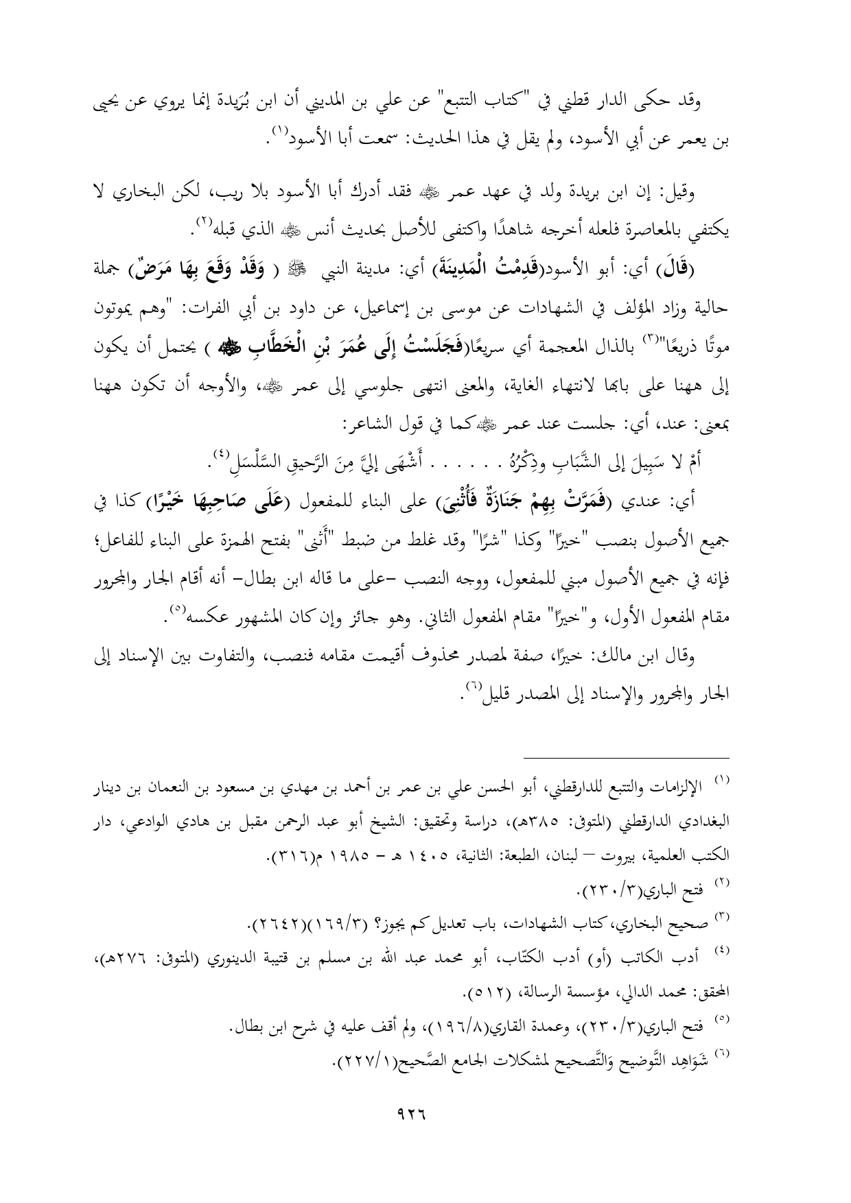 (¬١) الإلزامات والتتبع للدارقطني، أبو الحسن علي بن عمر بن أحمد بن مهدي بن مسعود بن النعمان بن دينار البغدادي الدارقطني (المتوفى: ٣٨٥ هـ)، دراسة وتحقيق: الشيخ أبو عبد الرحمن مقبل بن هادي الوادعي، دار الكتب العلمية، بيروت - لبنان، الطبعة: الثانية، ١٤٠٥ هـ - ١٩٨٥ م (٣١٦).