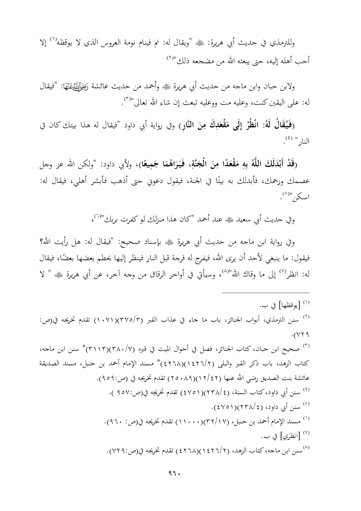 (¬٣) صحيح ابن حبان، كتاب الجنائز، فصل في أحوال الميت في قبره (٧/ ٣٨٠) (٣١١٣) * سنن ابن ماجه، كتاب الزهد، باب ذكر القبر والبلى (٢/ ١٤٢٦) (٤٢٦٨) * مسند الإمام أحمد بن حنبل، مسند الصديقة عائشة بنت الصديق رضي الله عنها (٤٢/ ١٢) (٢٥٠٨٩) تقدم تخريجه في (ص:٩٥٩).