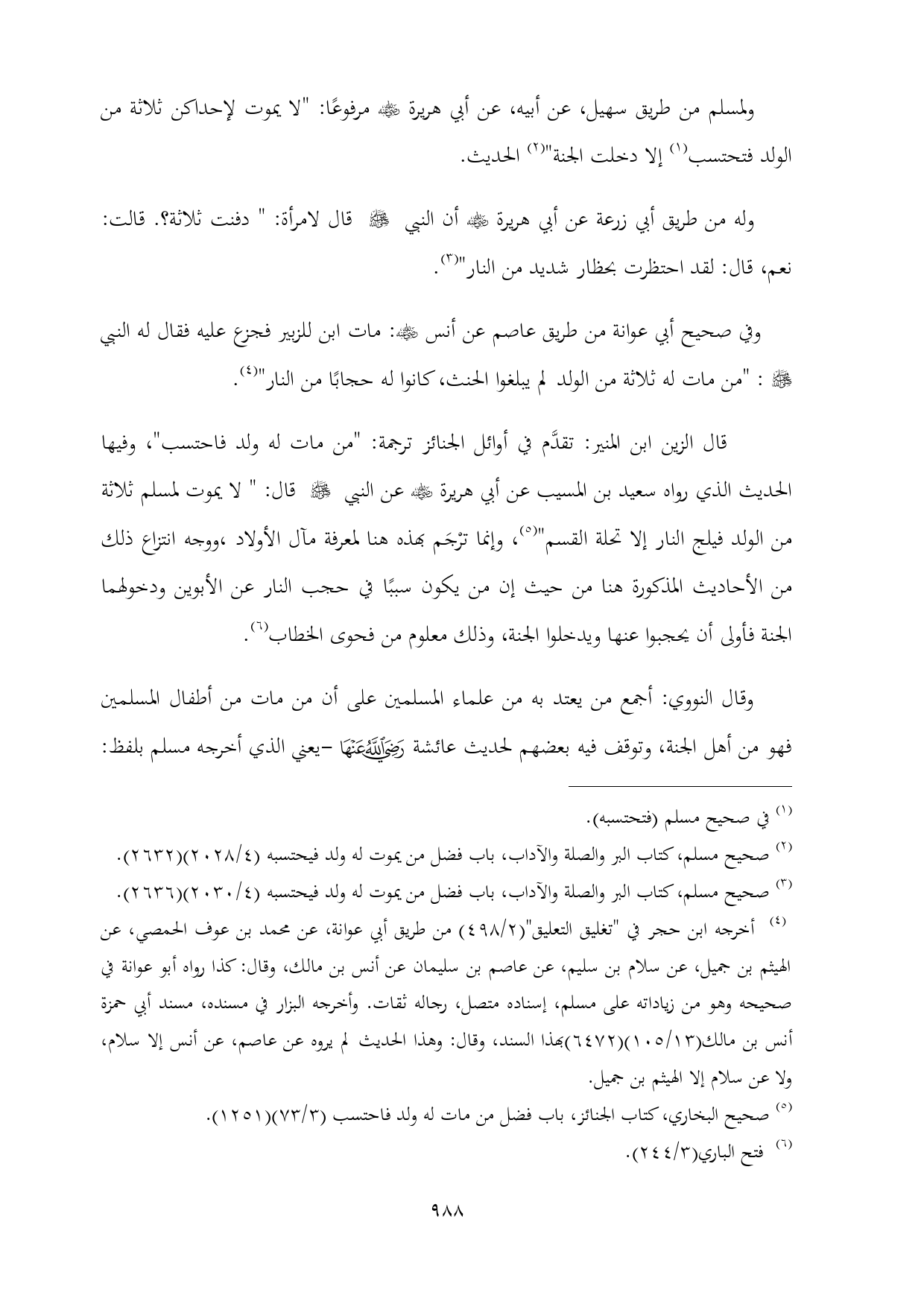 (¬٣) صحيح مسلم، كتاب البر والصلة والآداب، باب فضل من يموت له ولد فيحتسبه (٤/ ٢٠٣٠) (٢٦٣٦).
