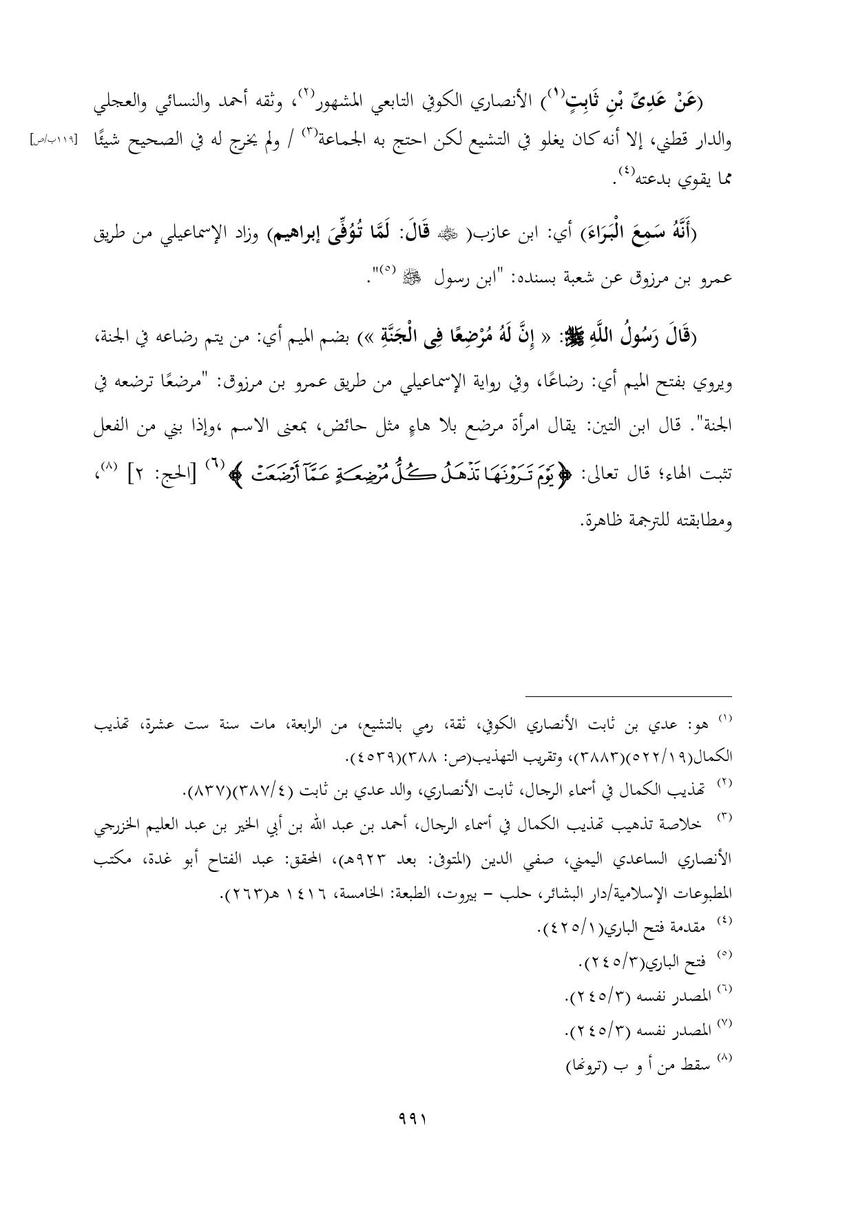 (¬٣) خلاصة تذهيب تهذيب الكمال في أسماء الرجال، أحمد بن عبد الله بن أبي الخير بن عبد العليم الخزرجي الأنصاري الساعدي اليمني، صفي الدين (المتوفى: بعد ٩٢٣ هـ)، المحقق: عبد الفتاح أبو غدة، مكتب المطبوعات الإسلامية/دار البشائر، حلب - بيروت، الطبعة: الخامسة، ١٤١٦ هـ (٢٦٣).