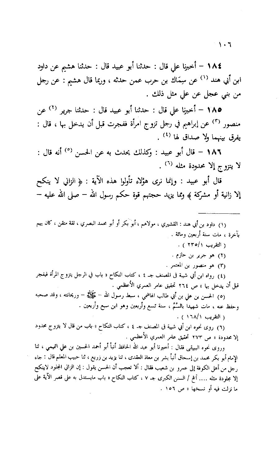 قال أبو عبيد: وإنما نرى هؤلاء تأولوا هذه الآية: الزَّانِي لا يَنْكِحُ إِلَّا زانِيَةً أَوْ مُشْرِكَةً ومما يزيد حجتهم قوة حكم رسول الله- صلّى الله عليه-