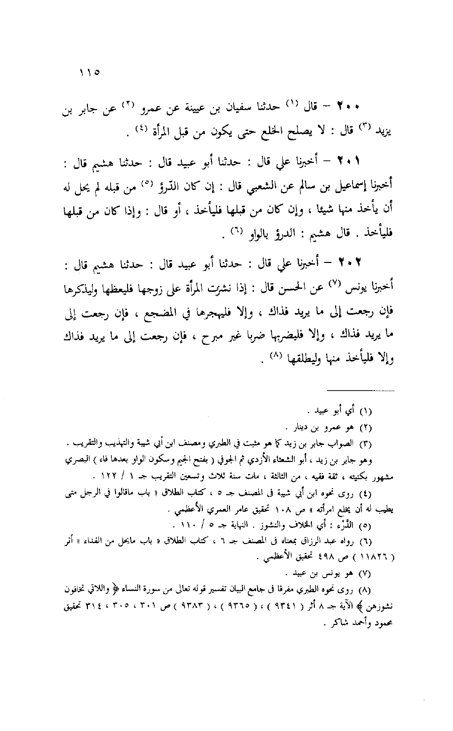 (¬8) روى نحوه الطبري مفرقا فى جامع البيان تفسير قوله تعالى من سورة النساء وَاللَّاتِي تَخافُونَ نُشُوزَهُنَّ الآية ج 8 أثر (9341)، (9365)، (9383) ص 301، 305، 314 تحقيق محمود وأحمد شاكر.