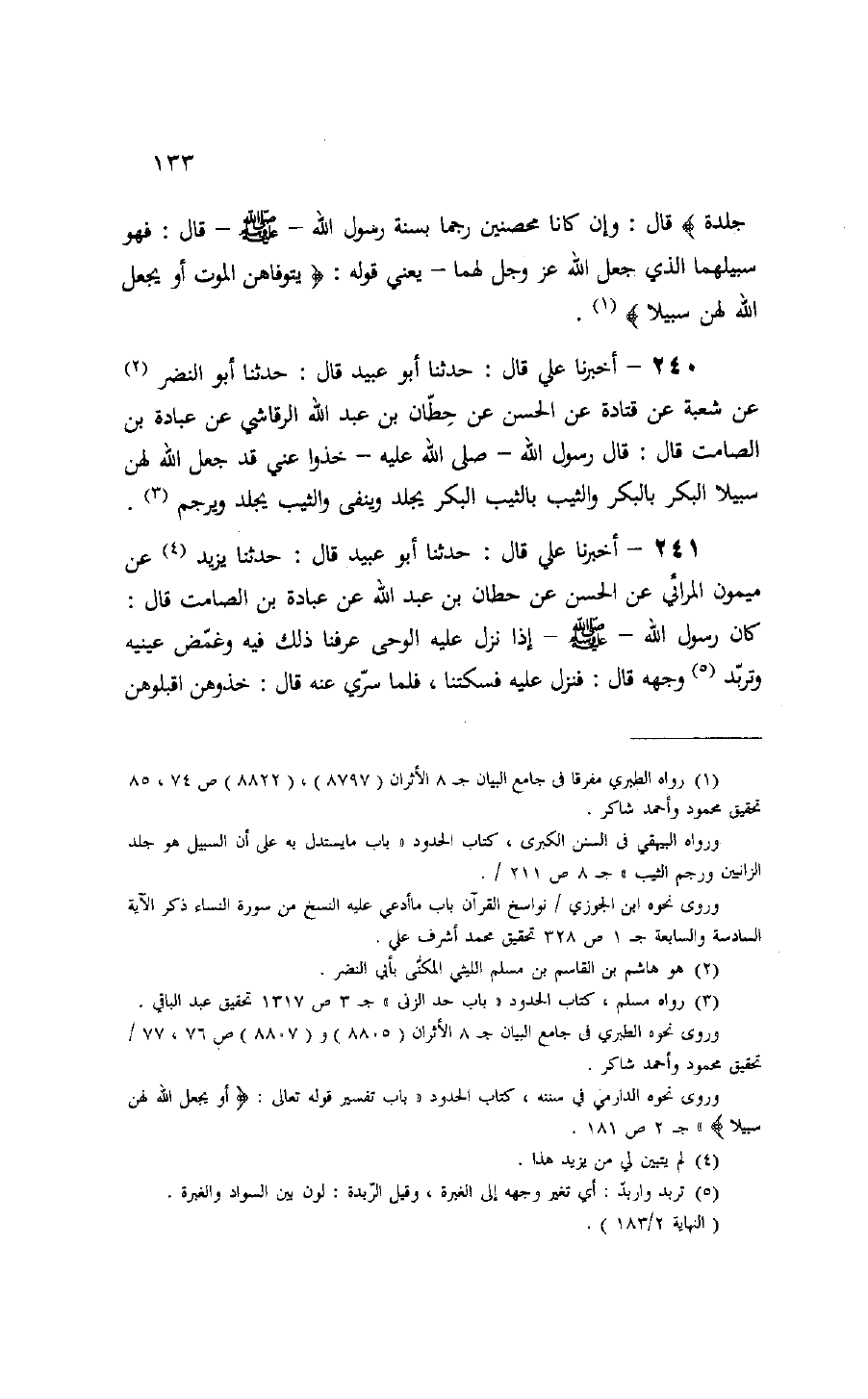 (¬3) رواه مسلم، كتاب الحدود «باب حد الزنى» ج 3 ص 1317 تحقيق عبد الباقي.