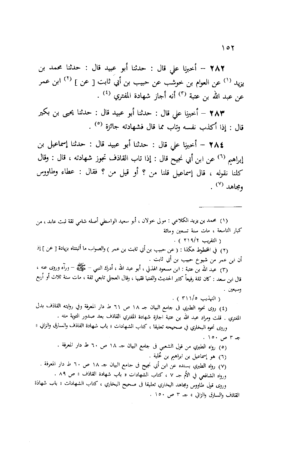 284 - أخبرنا علي قال: حدثنا أبو عبيد قال: حدثنا إسماعيل بن إبراهيم (¬6) عن ابن أبي نجيح قال: إذا تاب القاذف تجوز شهادته، قال: وقال كلنا نقوله، قال إسماعيل قلنا من؟ أو قيل من؟ فقال: عطاء وطاوس ومجاهد (¬7).