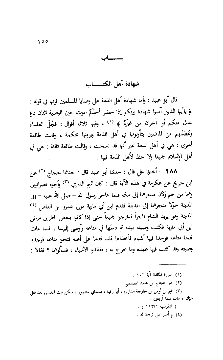 قال أبو عبيد: وأما شهادة أهل الذمة على وصايا المسلمين فإنها في قوله: