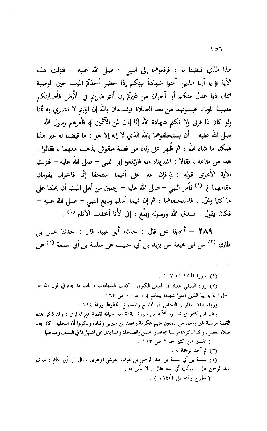 (¬2) رواه البيهقي بمعناه فى السنن الكبرى، كتاب الشهادات «باب ما جاء في قول الله عز جل: يا أَيُّهَا الَّذِينَ آمَنُوا شَهادَةُ بَيْنِكُمْ» ج 10 ص 164.