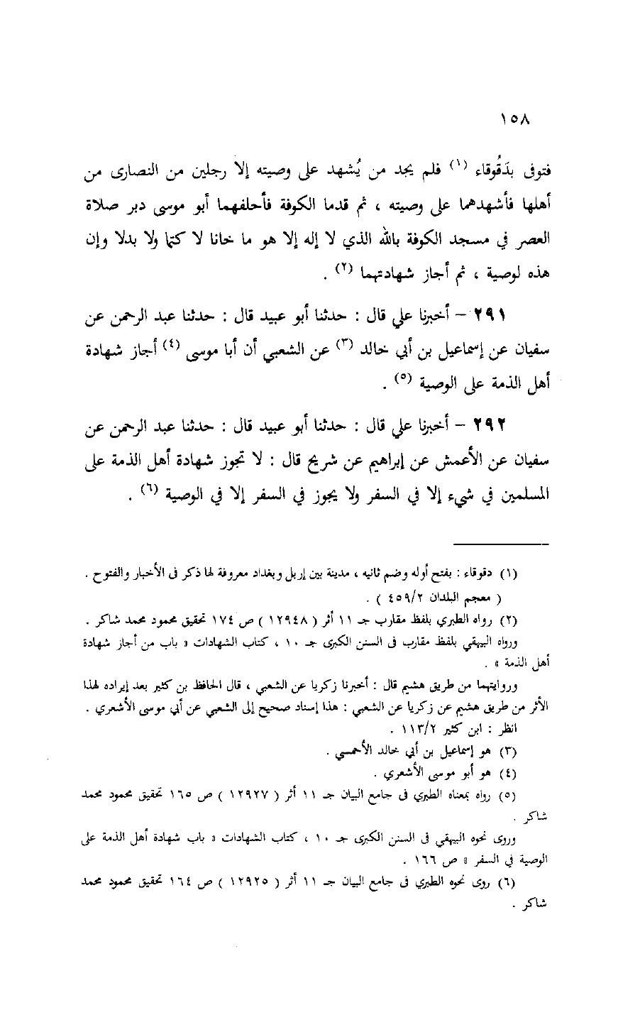 291 - أخبرنا علي قال: حدثنا أبو عبيد قال: حدثنا عبد الرحمن عن سفيان عن إسماعيل بن أبي خالد (¬3) عن الشعبي أن أبا موسى (¬4) أجاز شهادة أهل الذمة على الوصية (¬5).