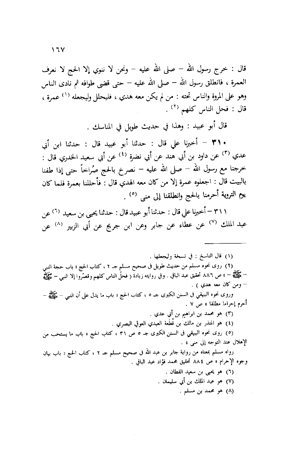 311 - أخبرنا علي قال: حدثنا أبو عبيد قال: حدثنا يحيى بن سعيد (¬6) عن عبد الملك (¬7) عن عطاء عن جابر وعن ابن جريج عن أبي الزبير (¬8) عن