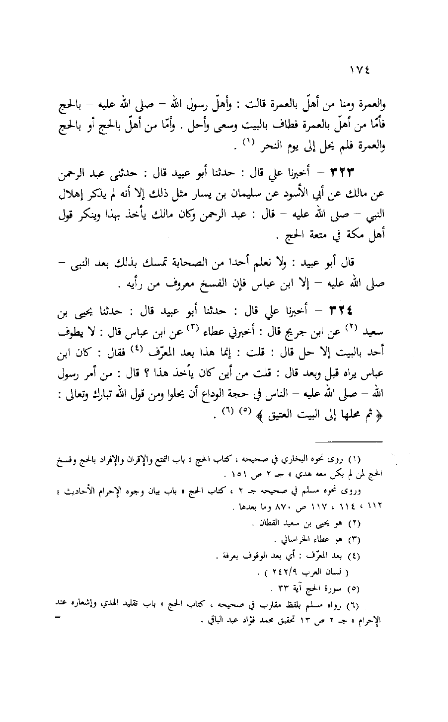323 - أخبرنا علي قال: حدثنا أبو عبيد قال: حدثنى عبد الرحمن عن مالك عن أبي الأسود عن سليمان بن يسار مثل ذلك إلا أنه لم يذكر إهلال النبي- صلّى الله عليه- قال: عبد الرحمن وكان مالك يأخذ بهذا وينكر قول أهل مكة في متعة الحج.