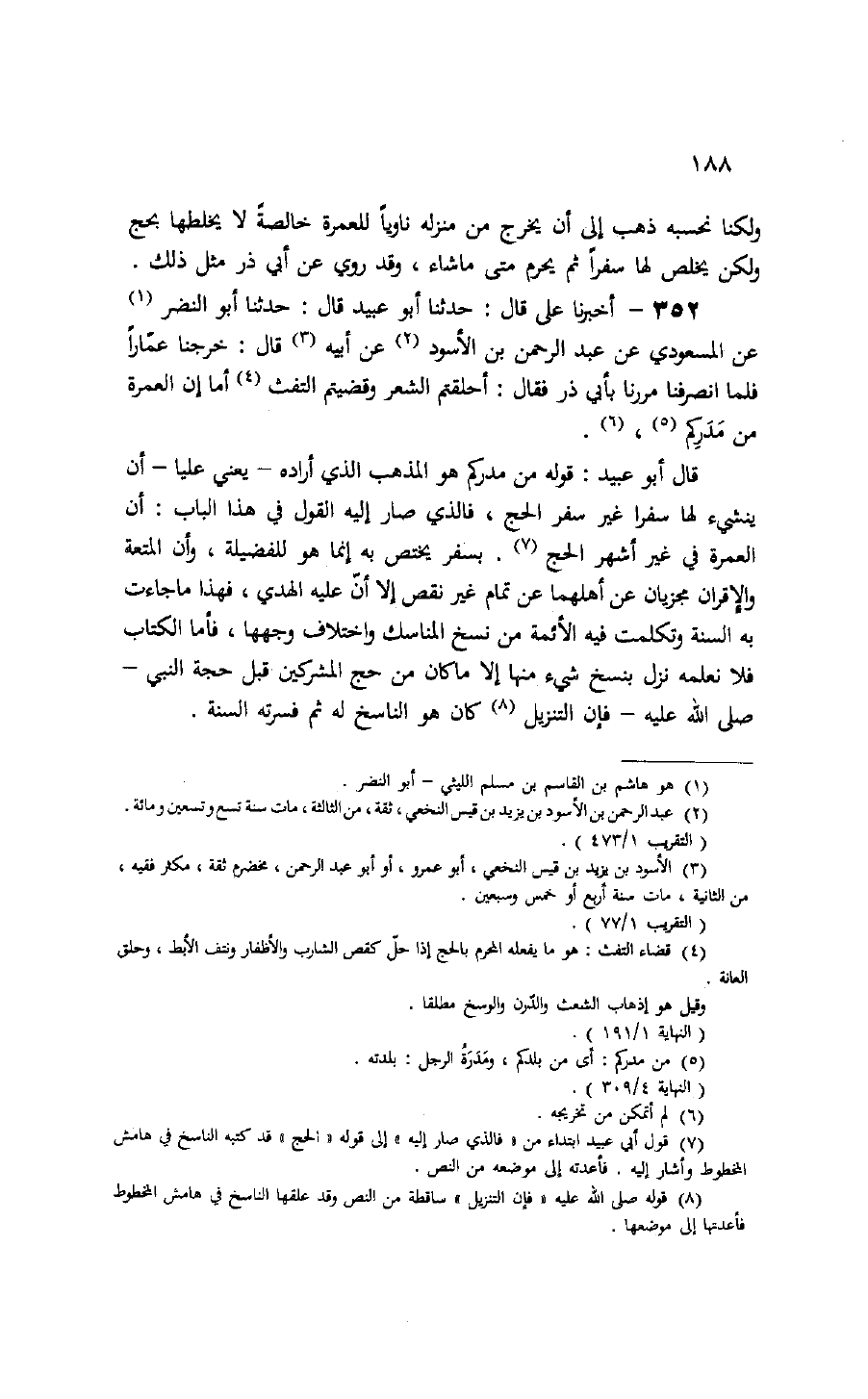 (¬7) قول أبي عبيد ابتداء من «فالذي صار إليه» إلى قوله «الحج» قد كتبه الناسخ في هامش المخطوط وأشار إليه. فأعدته إلى موضعه من النص.