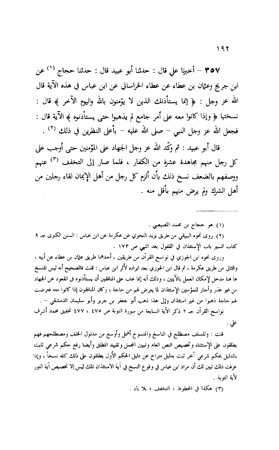 نواسخ القرآن ج 2 ذكر الآية السابعة من سورة التوبة ص 475، 477 تحقيق محمد أشرف علي.