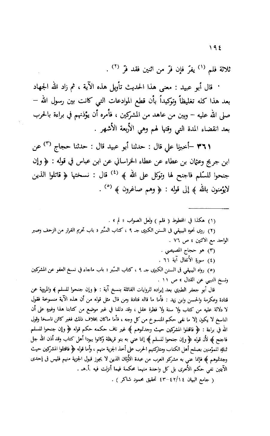 (¬5) رواه البيهقي فى السنن الكبرى ج 9، كتاب السّير «باب ما جاء في نسخ العفو عن المشركين ونسخ النهي عن القتال» ص 11.