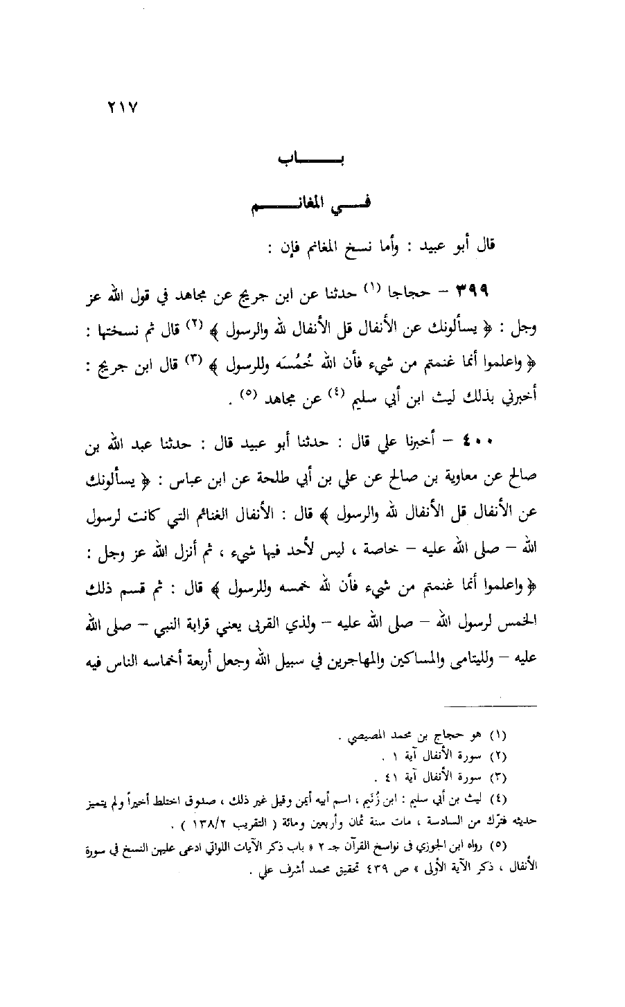 (¬5) رواه ابن الجوزي فى نواسخ القرآن ج 2 «باب ذكر الآيات اللواتي ادعى عليهن النسخ في سورة الأنفال، ذكر الآية الأولى» ص 439 تحقيق محمد أشرف علي.