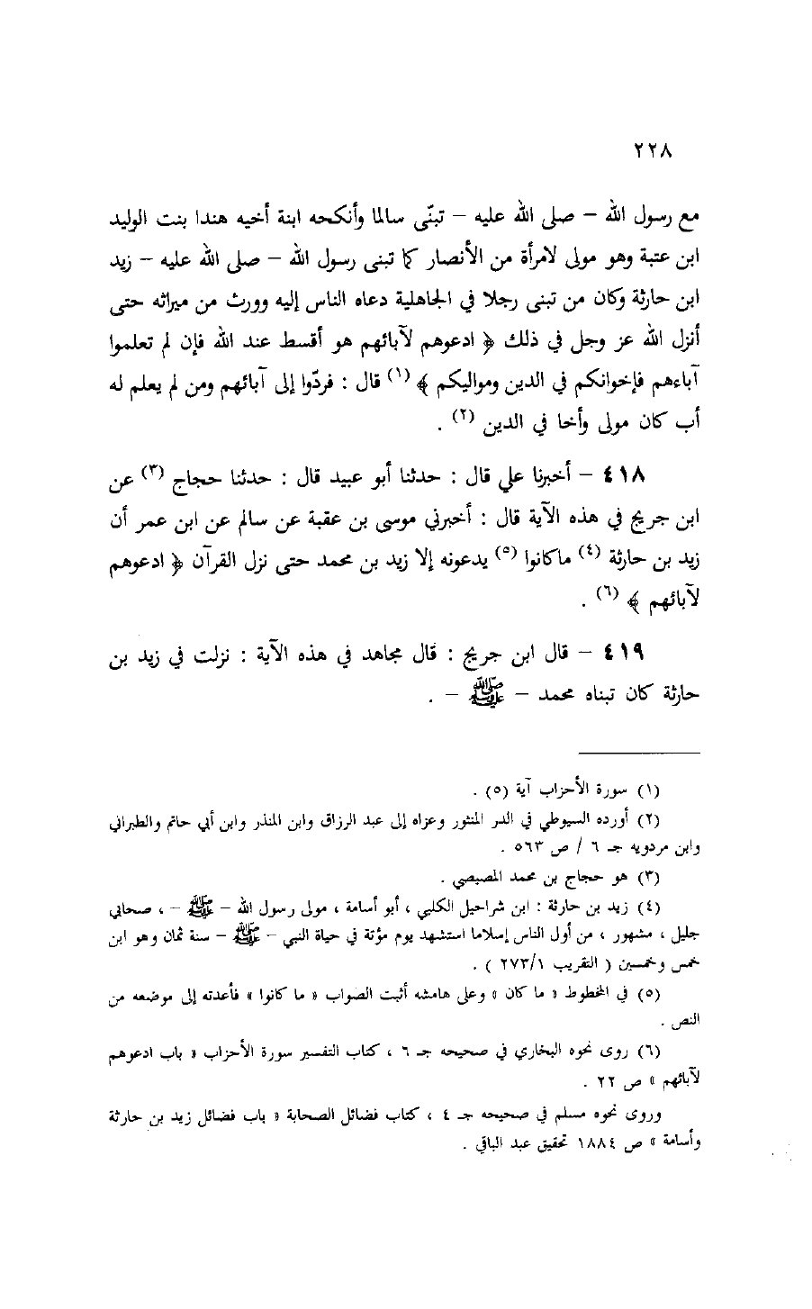(¬6) روى نحوه البخاري في صحيحه ج 6، كتاب التفسير سورة الأحزاب «باب ادعوهم لآبائهم» ص 22.