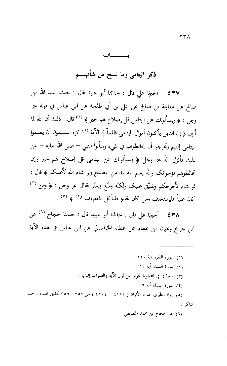 (¬5) رواه الطبري ج 4 الأثران (4191 - 4204) ص 352، 359 تحقيق محمود وأحمد شاكر.