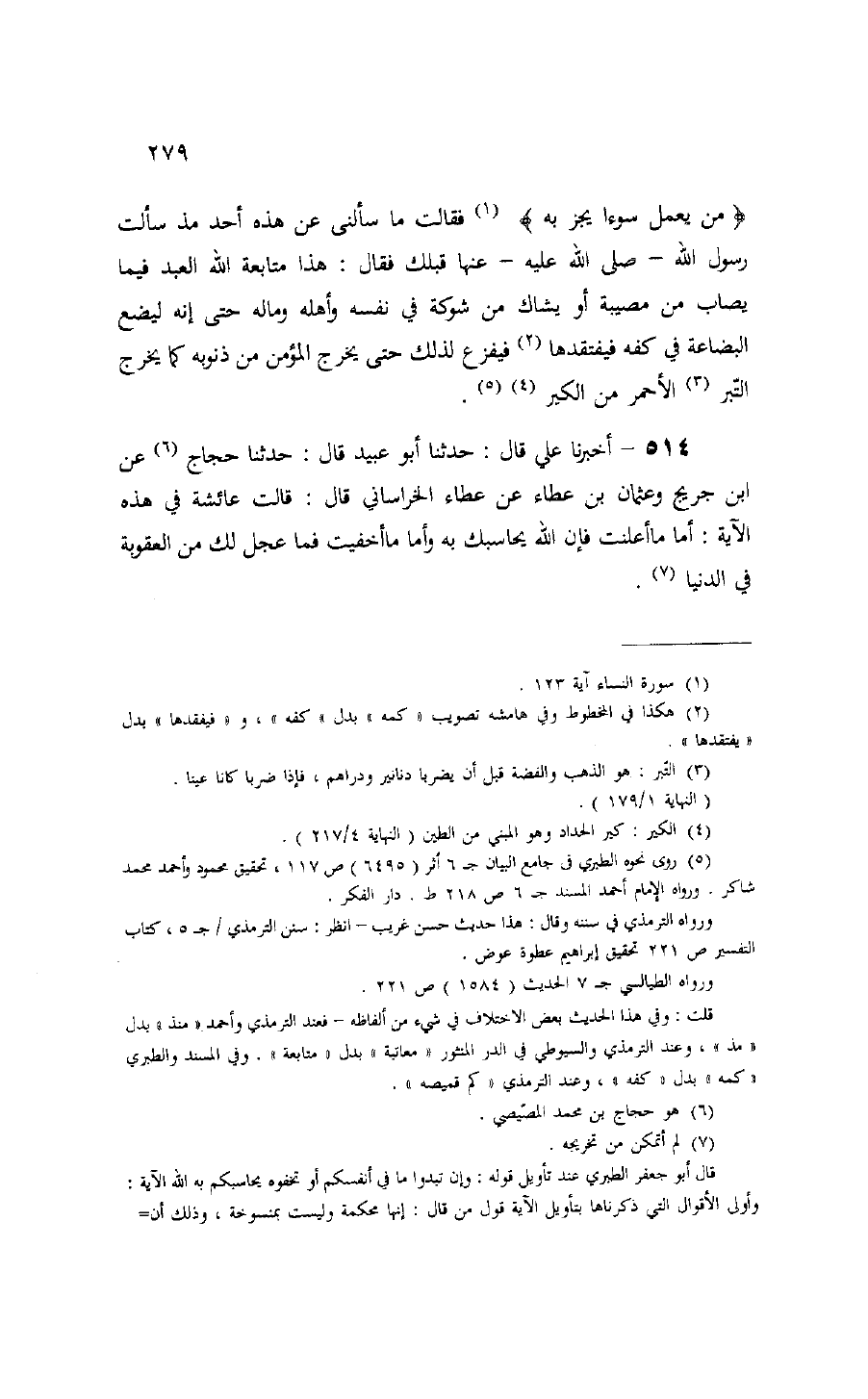 (¬5) روى نحوه الطبري فى جامع البيان ج 6 أثر (6495) ص 117، تحقيق محمود وأحمد محمد شاكر. ورواه الإمام أحمد المسند ج 6 ص 218 ط. دار الفكر.