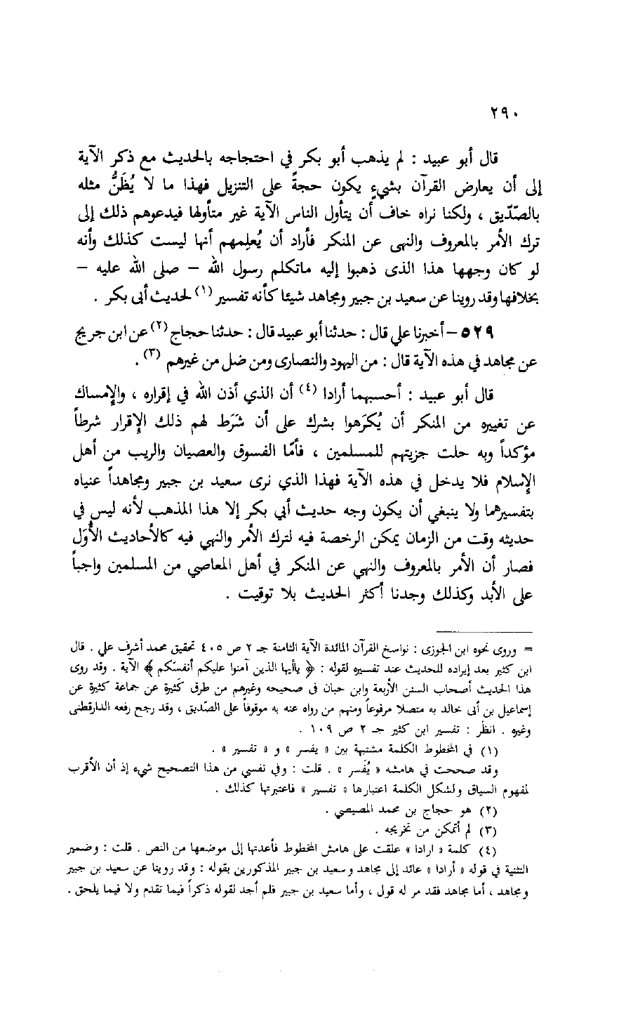 (¬4) كلمة «ارادا» علقت على هامش المخطوط فأعدتها إلى موضعها من النص. قلت: وضمير التثنية في قوله «أرادا» عائد إلى مجاهد وسعيد بن جبير المذكورين بقوله: وقد روينا عن سعيد بن جبير ومجاهد، أما مجاهد فقد مر له قول، وأما سعيد بن جبير فلم أجد لقوله ذكرا فيما تقدم ولا فيما يلحق.