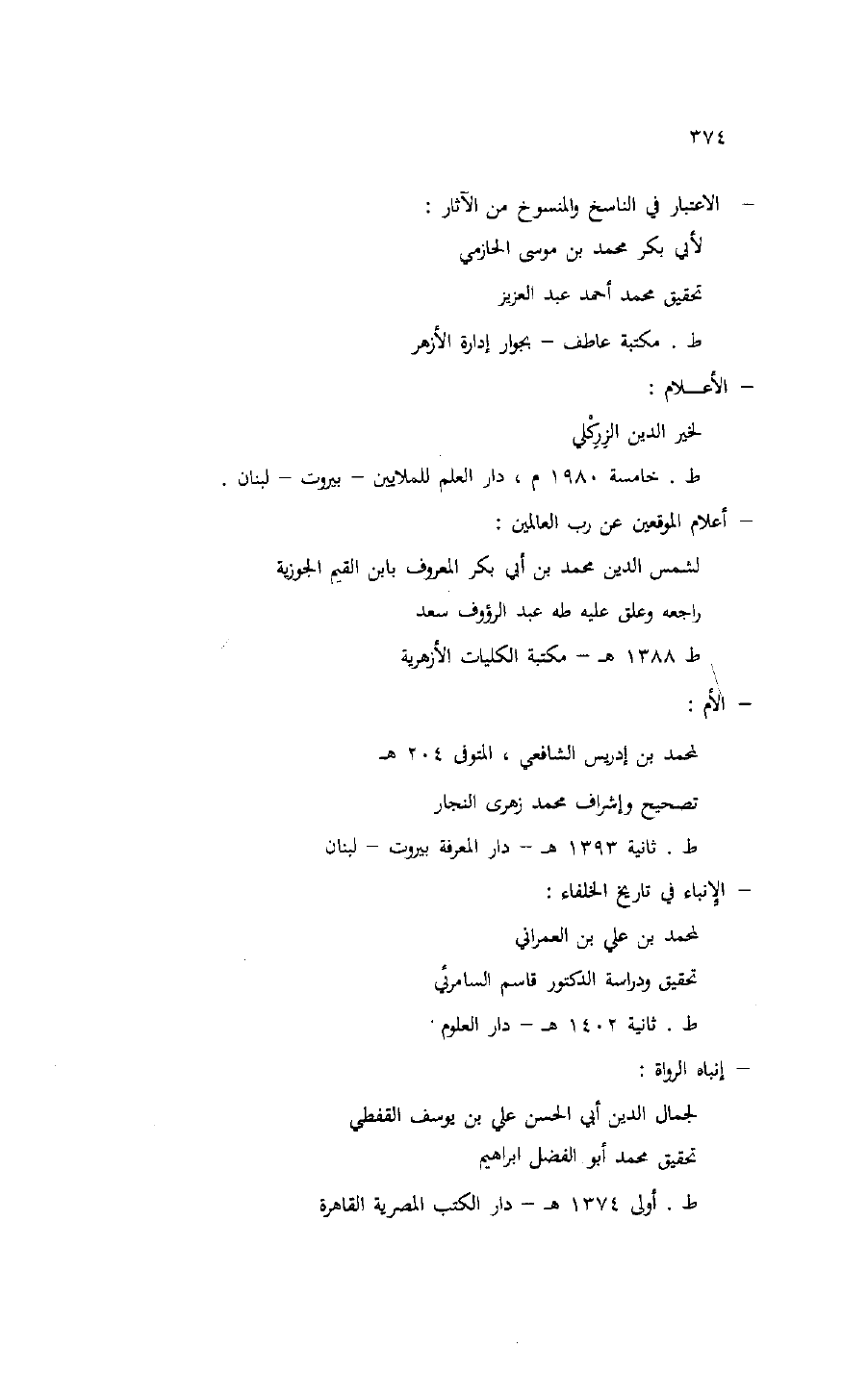 لأبي بكر محمد بن موسى الحازمي تحقيق محمد أحمد عبد العزيز ط. مكتبة عاطف- بجوار إدارة الأزهر- الأعلام:
