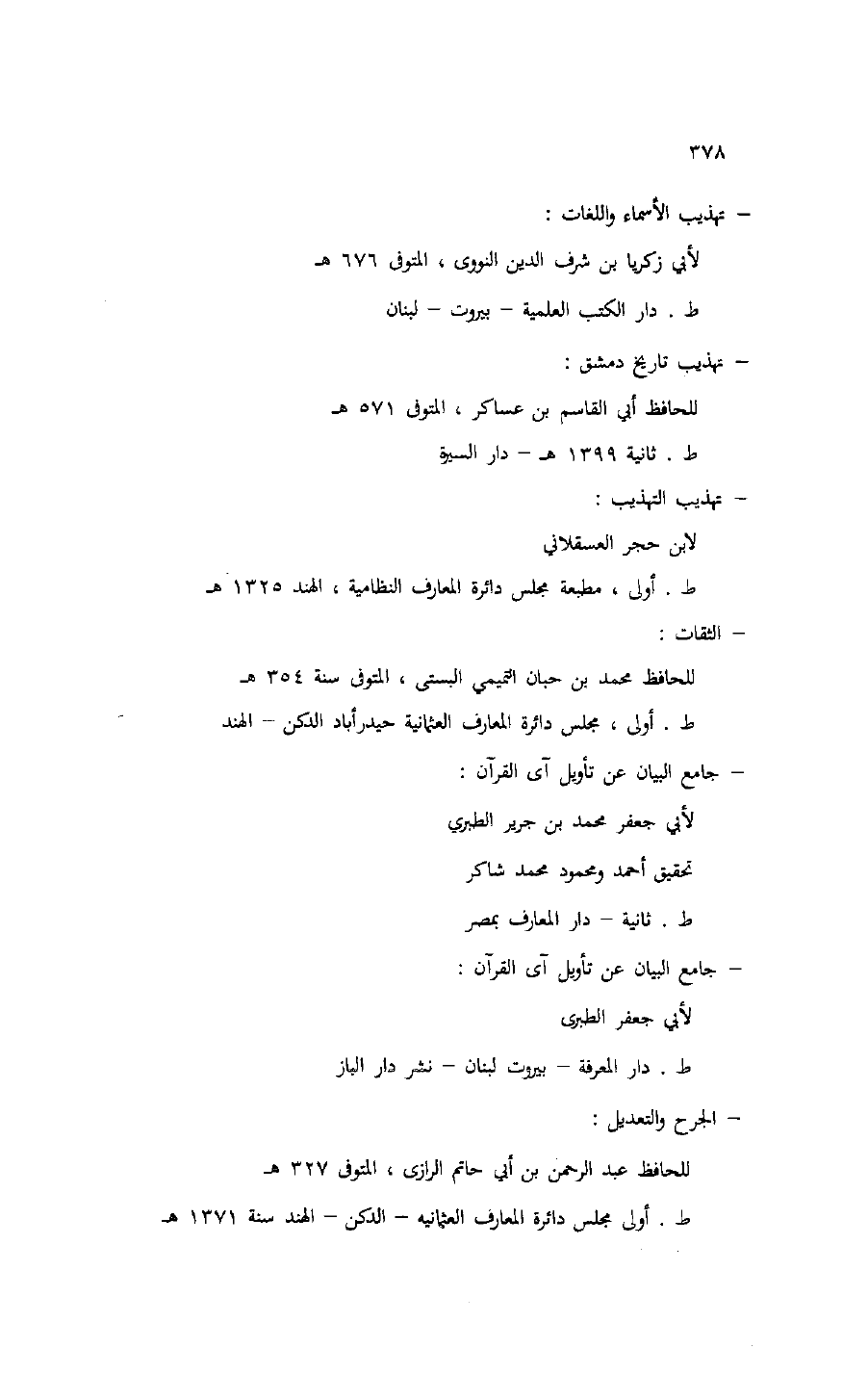 لأبي جعفر الطبرى ط. دار المعرفة- بيروت لبنان- نشر دار الباز- الجرح والتعديل: