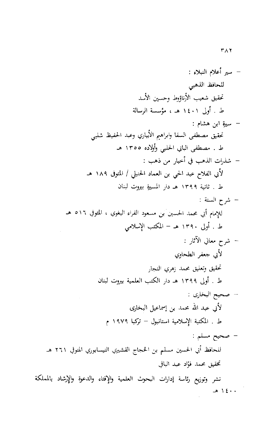 لأبي الفلاح عبد الحي بن العماد الحنبلي/ المتوفى 189 هـ ط. ثانية 1399 هـ دار المسيرة بيروت لبنان- شرح السنة: