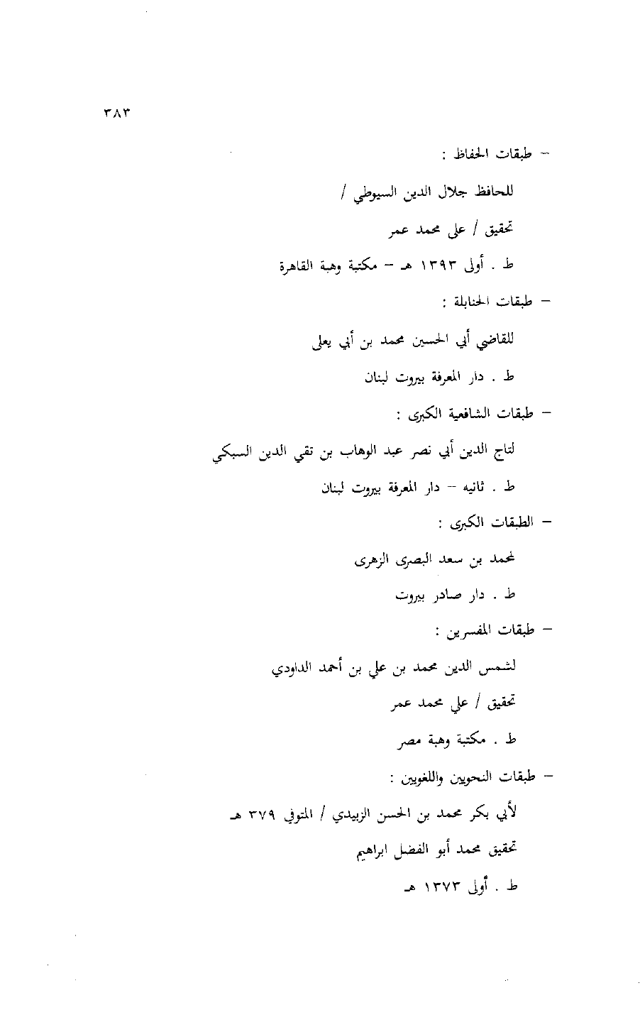للحافظ جلال الدين السيوطي/ تحقيق/ على محمد عمر ط. أولى 1393 هـ- مكتبة وهبة القاهرة- طبقات الحنابلة: