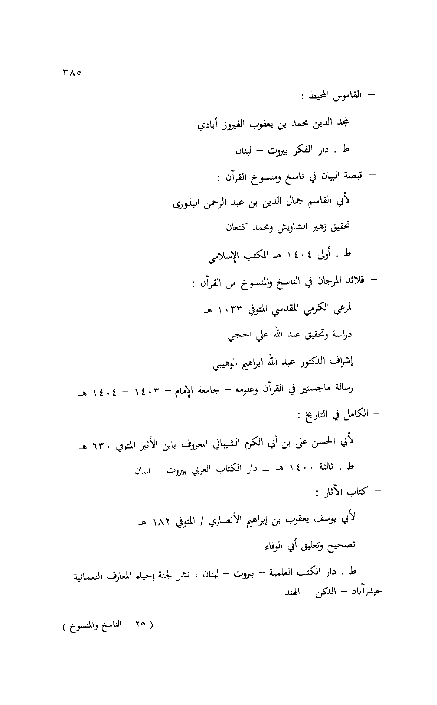 لمجد الدين محمد بن يعقوب الفيروزآبادي ط. دار الفكر بيروت- لبنان- قبصة البيان في ناسخ ومنسوخ القرآن: