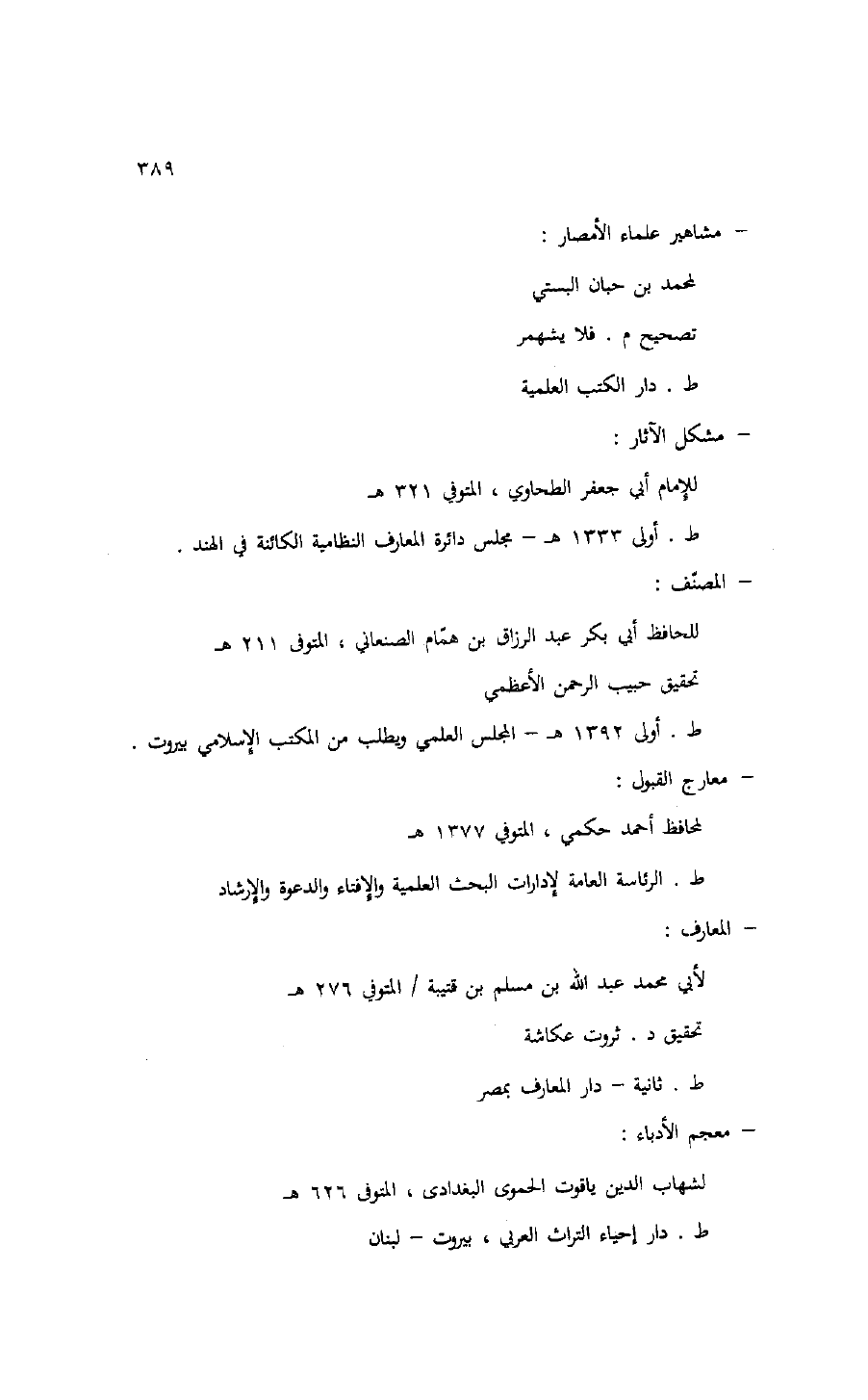 لمحمد بن حبان البستي تصحيح م. فلايشهمر ط. دار الكتب العلمية- مشكل الآثار: