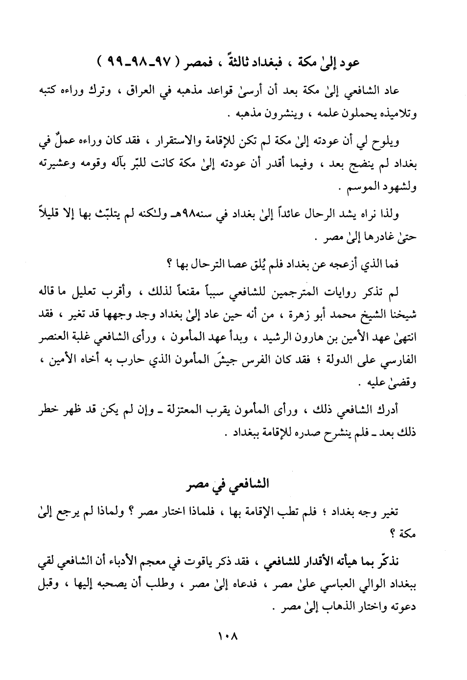 ولذا نراه يشد الرحال عائداً إلى بغداد في سنه 98 هـ ولكنه لم يتلبّث بها إلا قليلاً حتى غادرها إلى مصر.