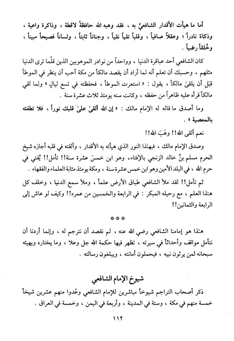 وما أصدق ما قاله له الإمام مالك: "إن الله ألقى على قلبك نوراً، فلا تطفئه بالمعصية".