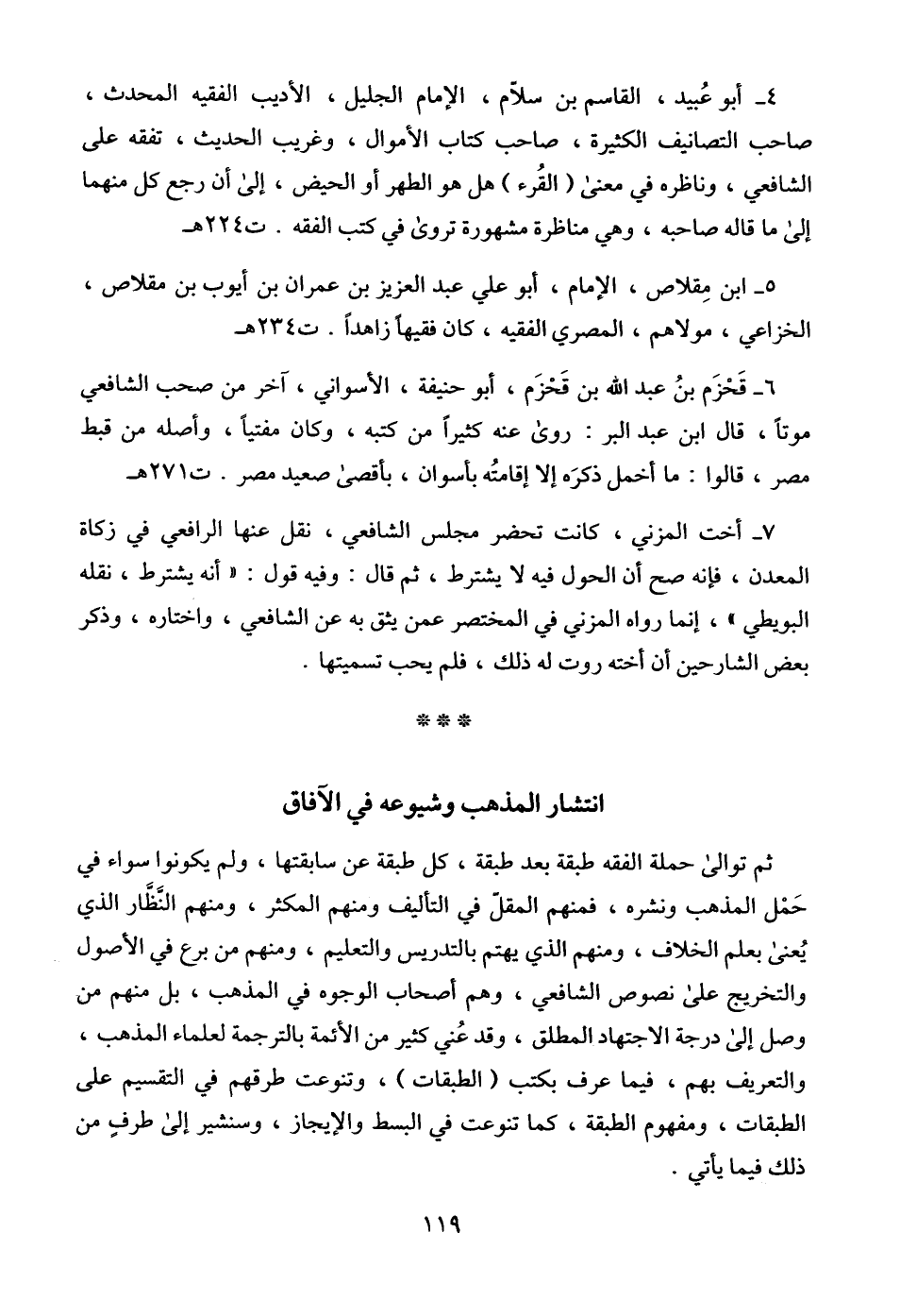 5 - ابن مِقلاص، الإمام، أبو على عبد العزيز بن عمران بن أيوب بن مقلاص، الخزاعي، مولاهم، المصري الفقيه، كان فقيها زاهداً. ت 234 هـ