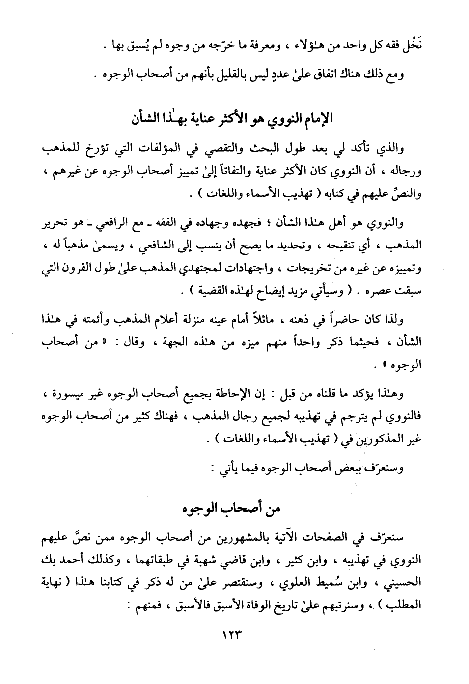 والذي تأكد لي بعد طول البحث والتقصي في المؤلفات التي تؤرخ للمذهب ورجاله، أن النووي كان أكثر عناية والتفاتاً إلى تمييز أصحاب الوجوه عن غيرهم، والنصِّ عليهم في كتابه (تهذيب الأسماء واللغات).