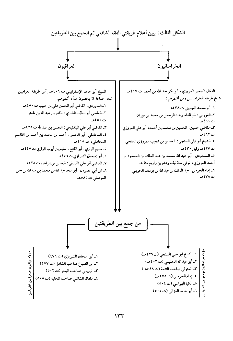 الشكل الثالث: يبين أعلام طريقتي الفقه الشافعي ثم الجمع بين الطريقتين:
