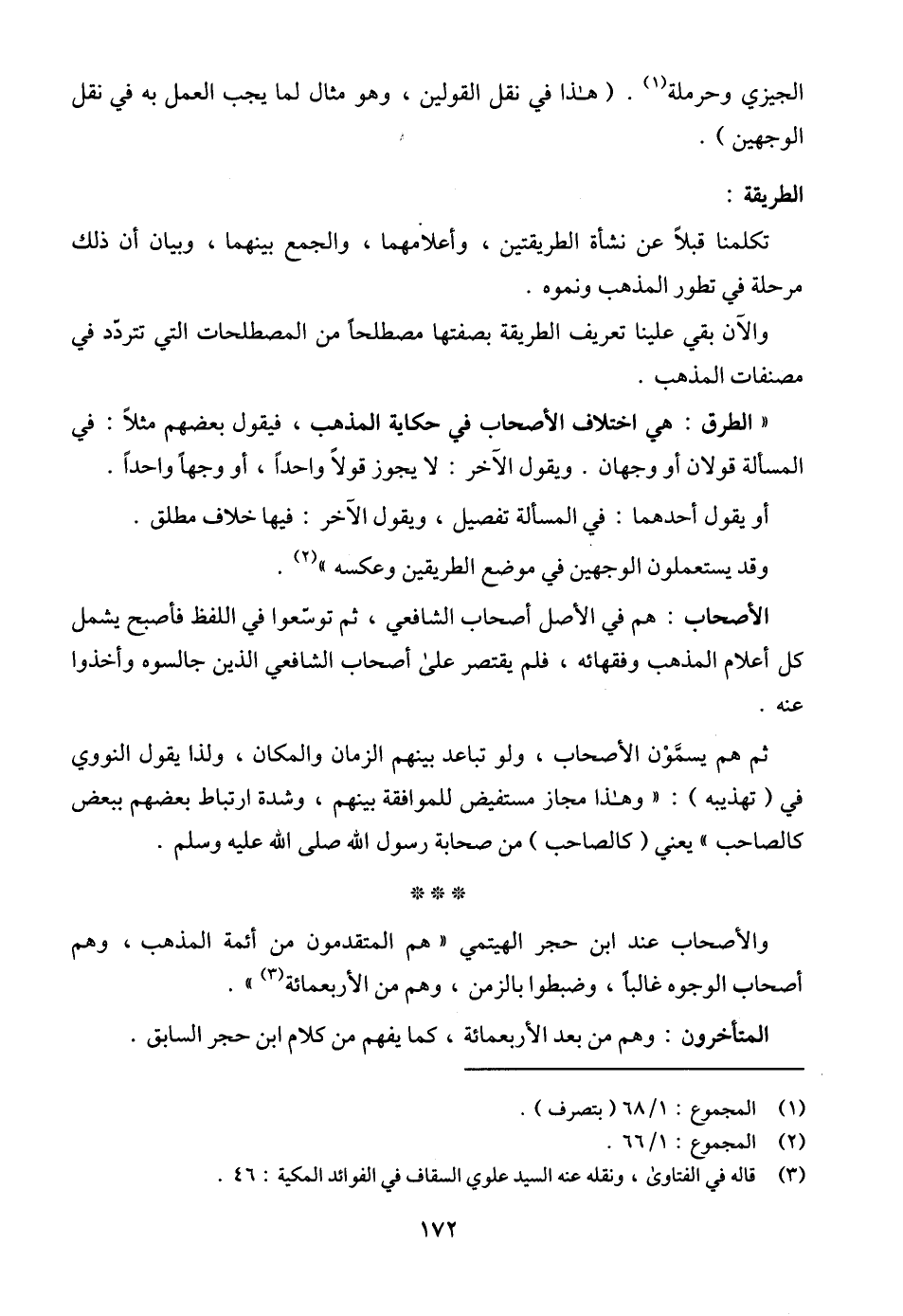 والأصحاب عند ابن حجر الهيتمي " هم المتقدمون من أئمة المذهب، وهم أصحاب الوجوه غالباً، وضبطوا بالزمن، وهم من الأربعمائة (¬3) ".