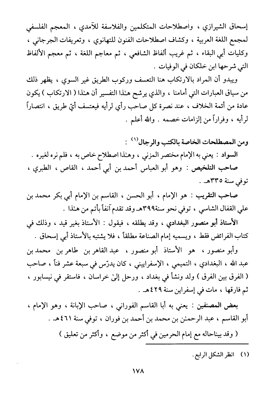 إسحاق الشيرازي، واصطلاحات المتكلمين والفلاسفة للآمدي، المعجم الفلسفي لمجمع اللغة العربية، وكشاف اصطلاحات الفنون للتهانوي، وتعريفات الجرجاني، وكليات أبي البقاء، ثم غريب ألفاظ الشافعي، ثم معاجم اللغة، ثم معجم الألفاظ التي شرحها ابن خلكان في الوفيات.