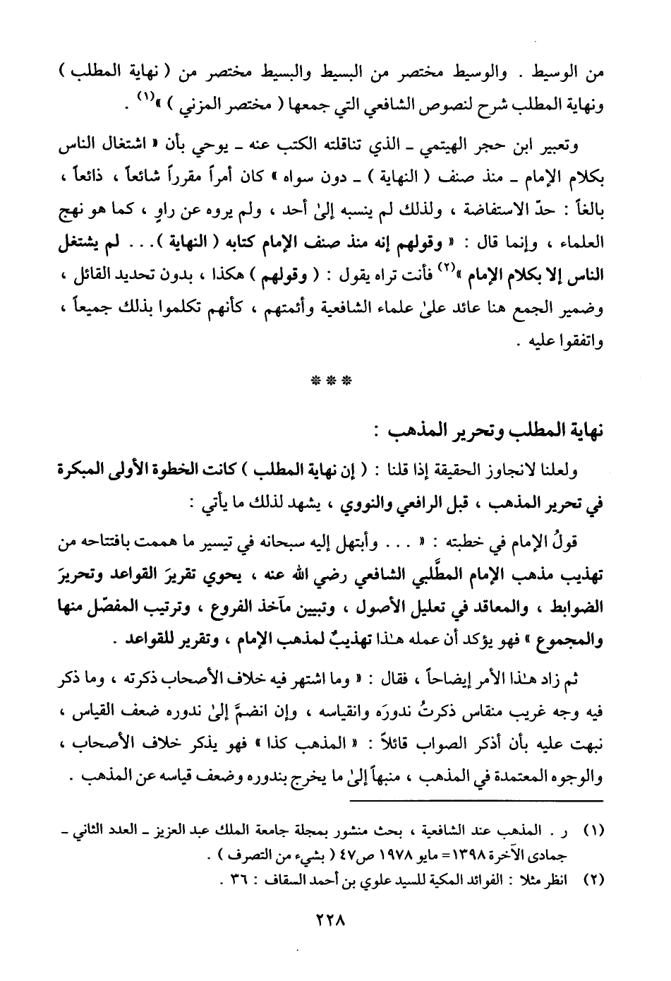 (¬1) ر. المذهب عند الشافعية، بحث منشور بمجلة جامعة الملك عبد العزيز -العدد الثاني- جمادى الآخرة 1398 = مايو 1978 ص 47 (بشيء من التصرف).