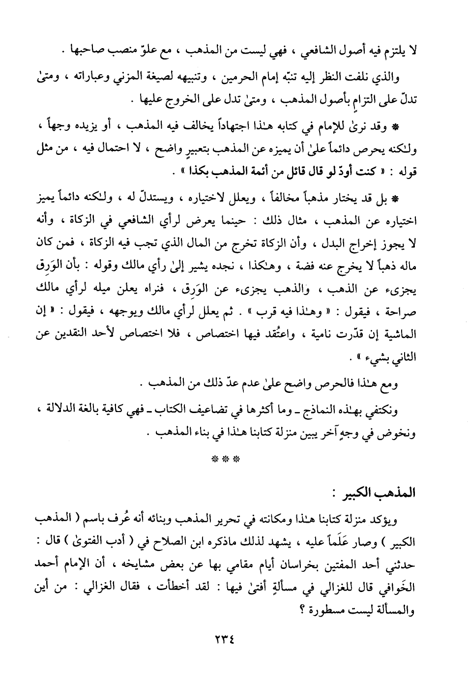 ويؤكد منزلة كتابنا هذا ومكانته في تحرير المذهب وبنائه أنه عُرف باسم (المذهب الكبير) وصار عَلَماً عليه، يشهد لذلك ما ذكره ابن الصلاح في (أدب الفتوى) قال: حدثني أحد المفتين بخراسان أيام مقامي بها عن بعض مشايخه، أن الإمام أحمد الخَوافي قال للغزالي في مسألةٍ أفتى فيها: لقد أخطأت، فقال الغزالي: من أين والمسألة ليست مسطورة؟
