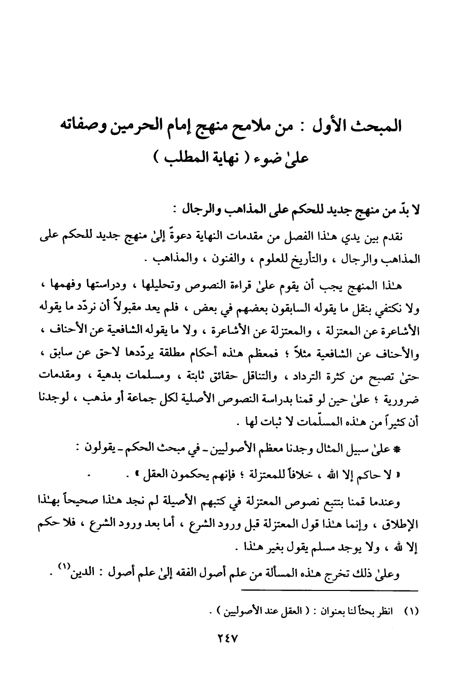 نقدم بين يدي هذا الفصل من مقدمات النهاية دعوةً إلى منهج جديد للحكم على المذاهب والرجال، والتأريخ للعلوم، والفنون، والمذاهب.