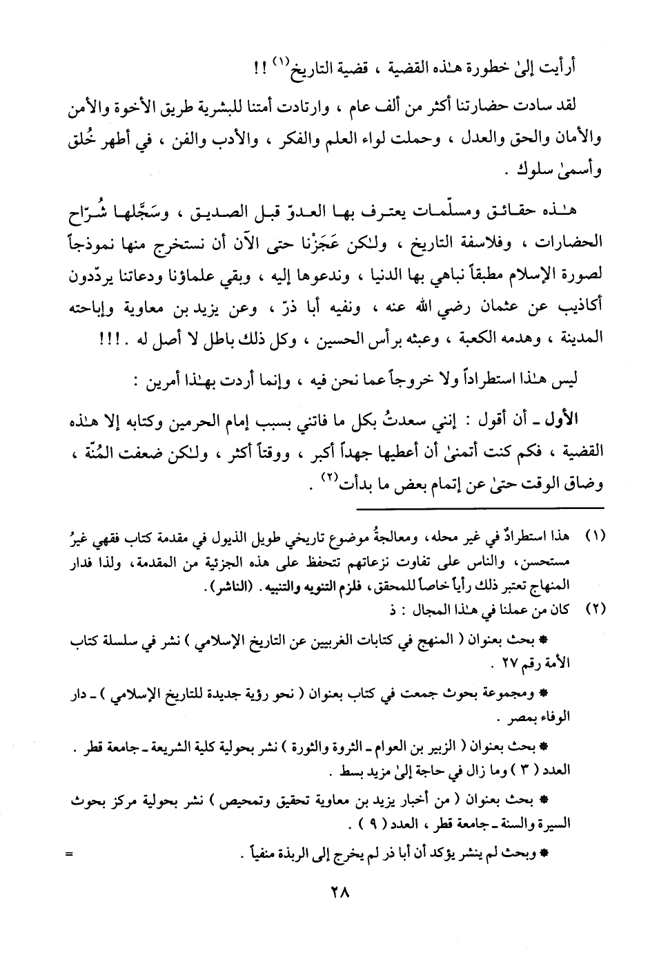 أرأيت إلى خطورة هذه القضية، قضية التاريخ) (¬1)!!