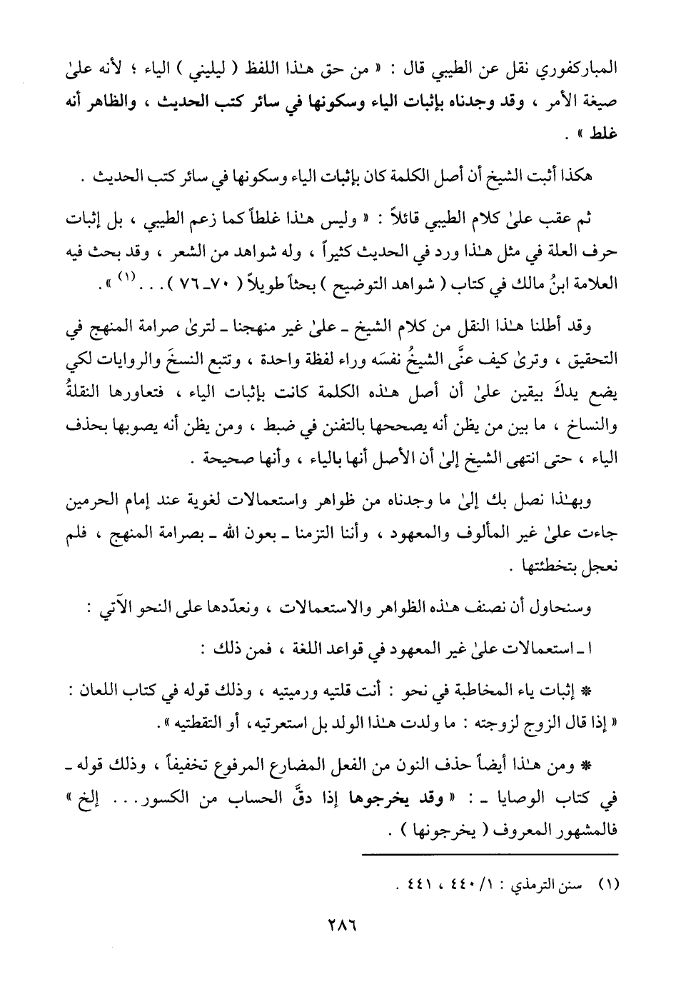 هكذا أثبت الشيخ أن أصل الكلمة كان بإثبات الياء وسكونها في سائر كتب الحديث.