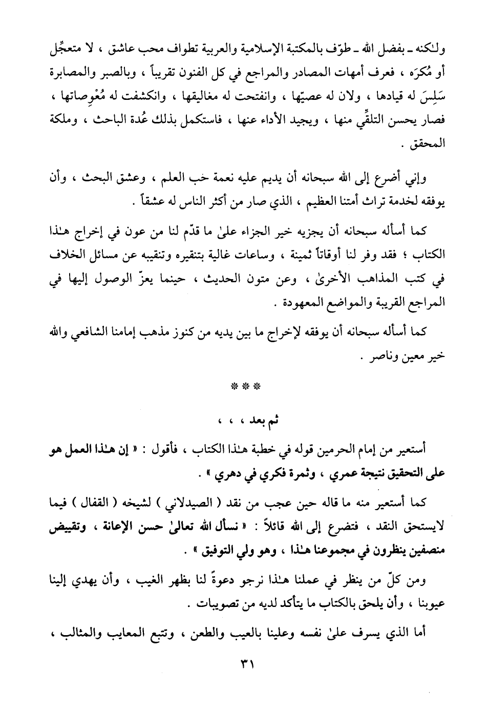 كما أسأله سبحانه أن يوفقه لإخراج ما بين يديه من كنوز مذهب إمامنا الشافعي والله خير معين وناصر.