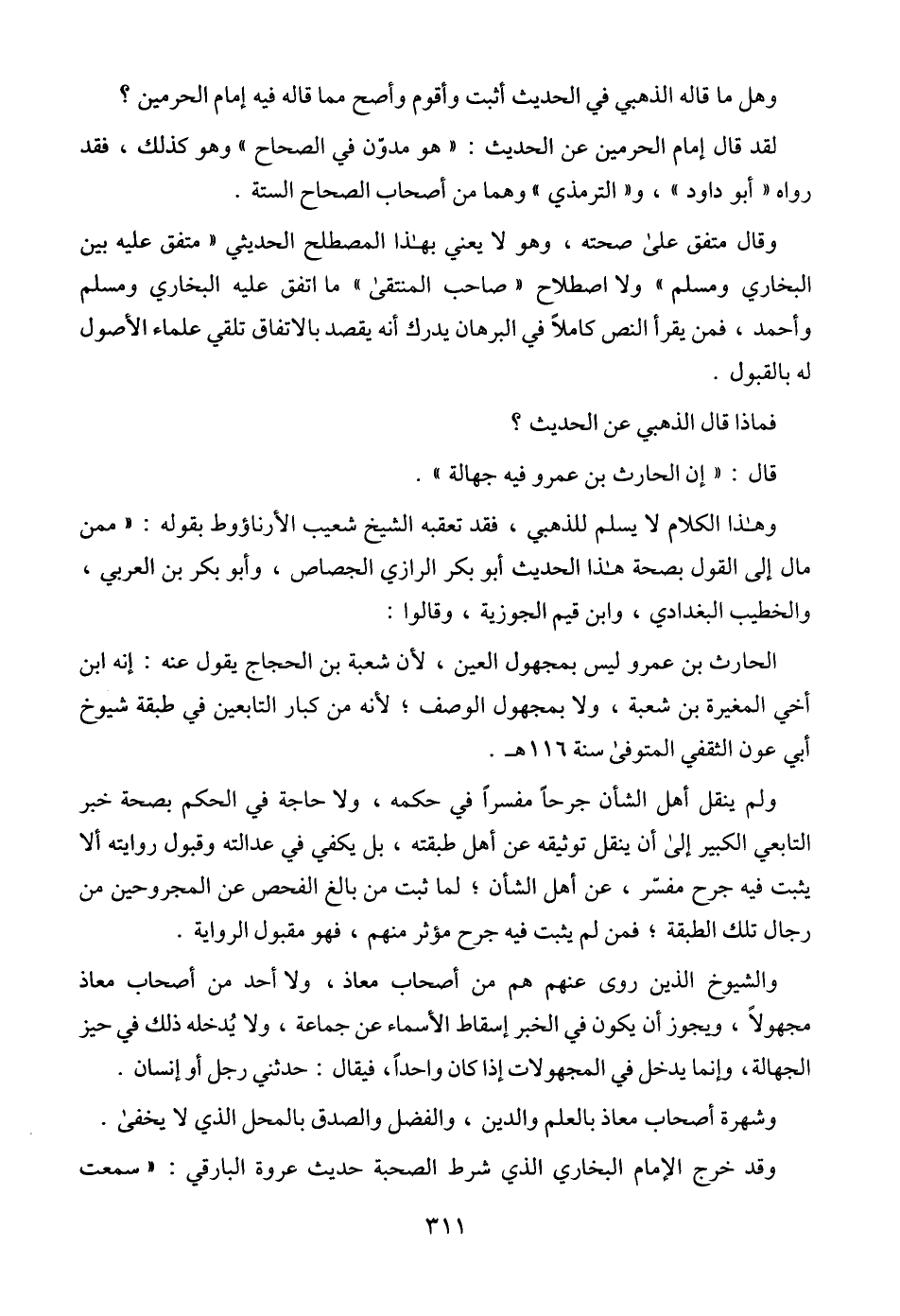 لقد قال إمام الحرمين عن الحديث: " هو مدوّن في الصحاح " وهو كذلك، فقد رواه " أبو داود "، و" الترمذي " وهما من أصحاب الصحاح الستة.
