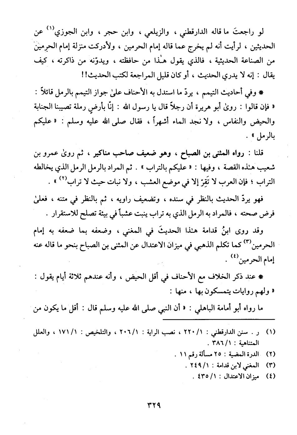 وقد روى ابنُ قدامة هذا الحديثَ في المغني، وضعفه بما ضعفه به إمام الحرمين (¬3) كما تكلم الذهبي في ميزان الاعتدال عن المثنى بن الصباح بنحو ما قاله عنه إمام الحرمين (¬4).